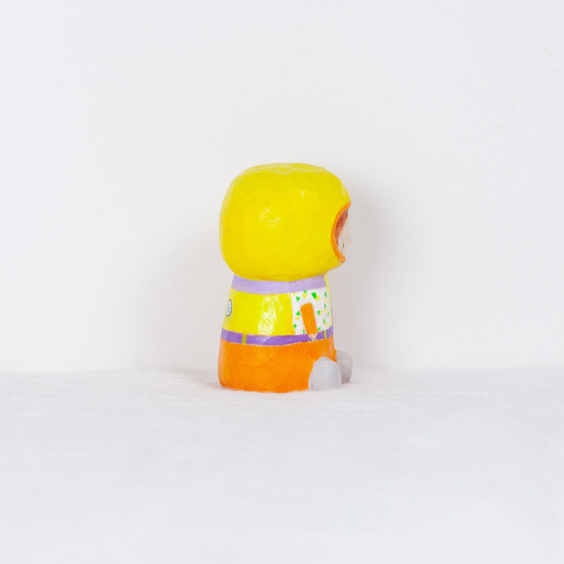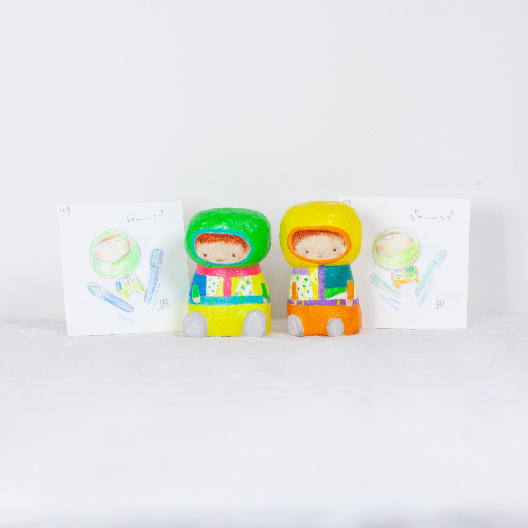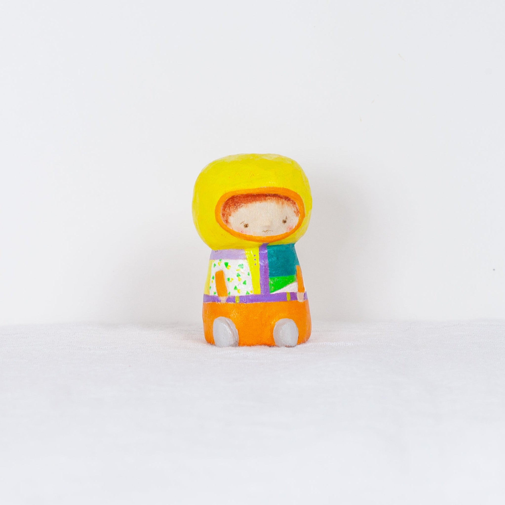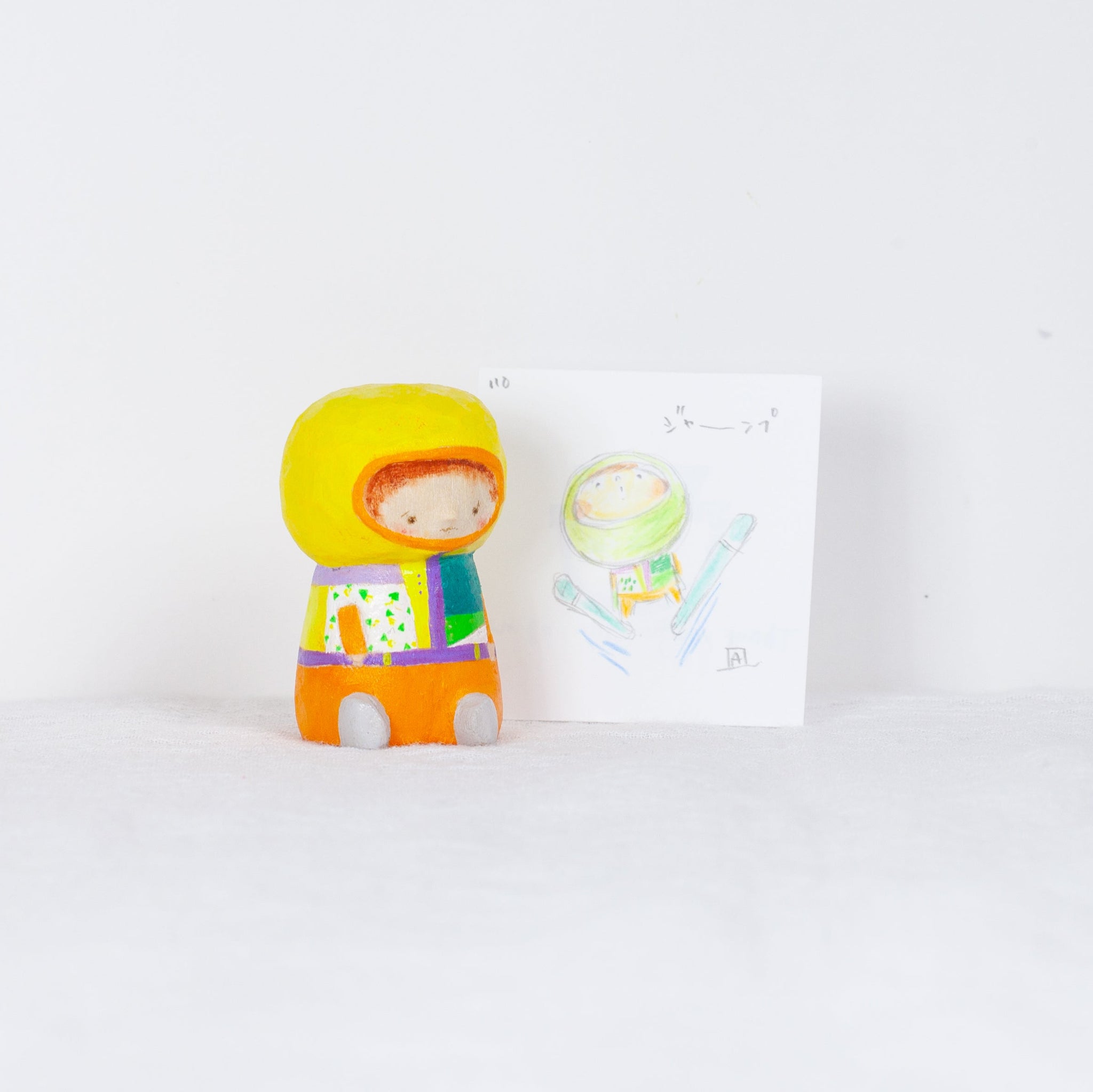 Akaiboushinoki’s carvings often feature tiny characters who always look just a little bit concerned. Each one is hand carved, hand painted, and completely one-of-a-kind. But it is not just the carvings that make Akaiboushinoki’s work special. The playful titles and little after stories, illustrated scenes that come with each piece, feel like quiet whispers from the figurines themselves and have become a signature part of Akaiboushinoki’s world.