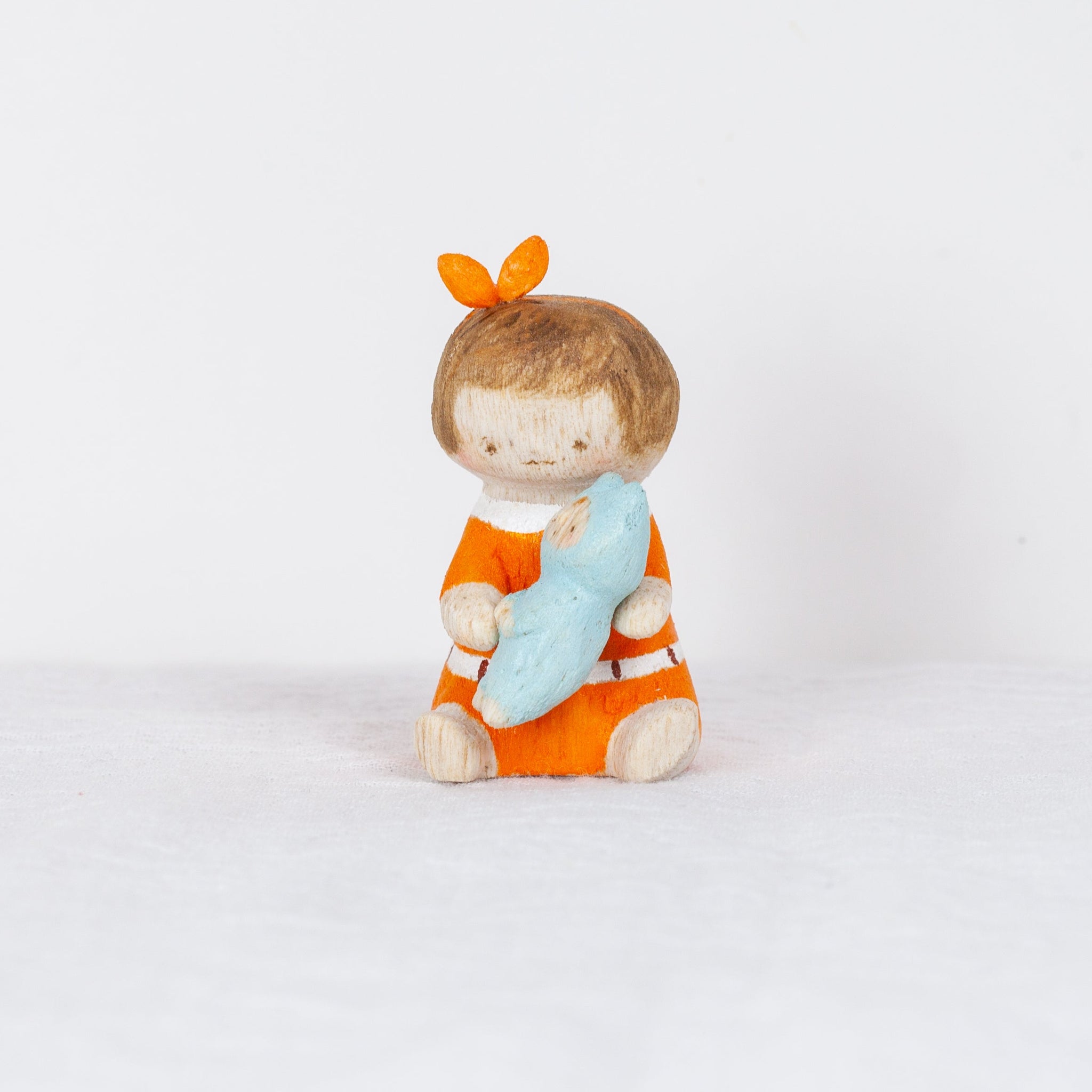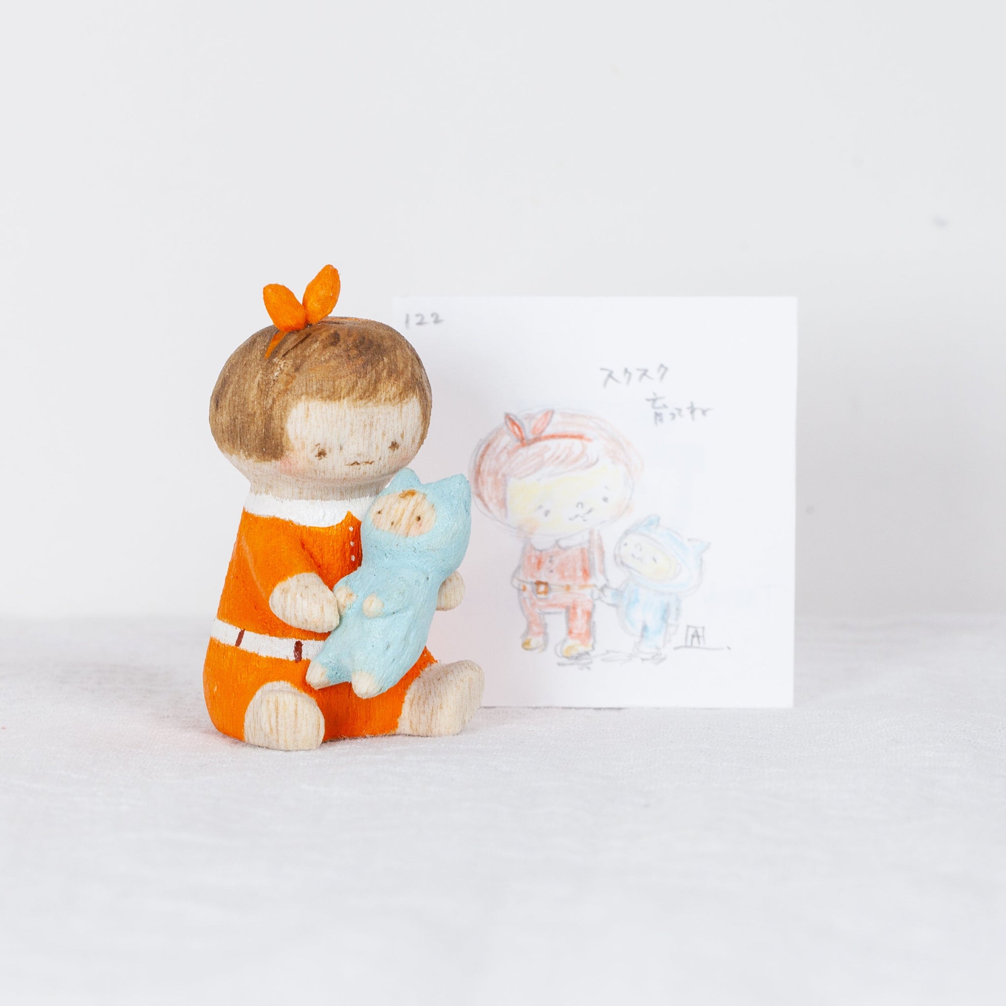 Akaiboushinoki’s carvings often feature tiny characters who always look just a little bit concerned. Each one is hand carved, hand painted, and completely one-of-a-kind. But it is not just the carvings that make Akaiboushinoki’s work special. The playful titles and little after stories, illustrated scenes that come with each piece, feel like quiet whispers from the figurines themselves and have become a signature part of Akaiboushinoki’s world.