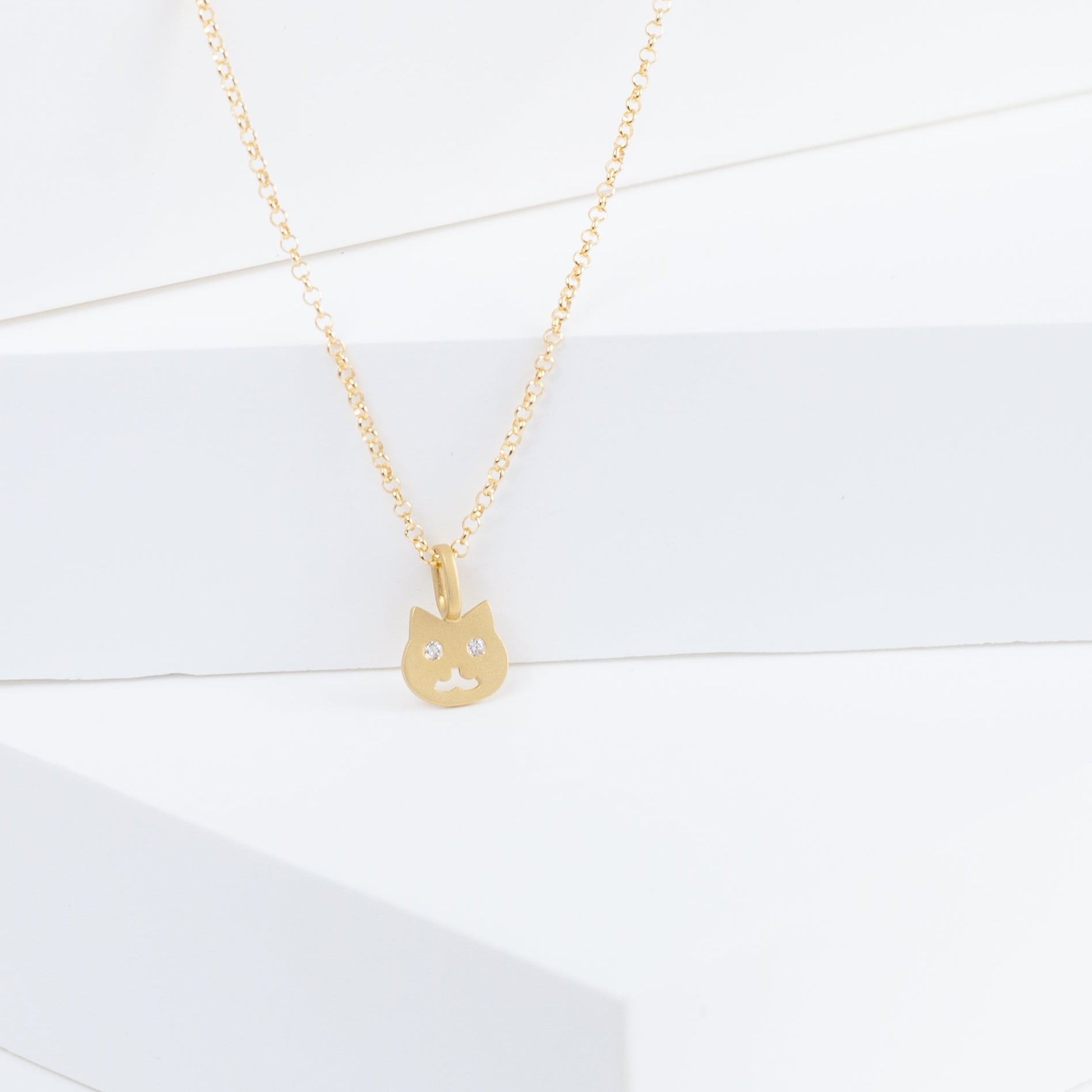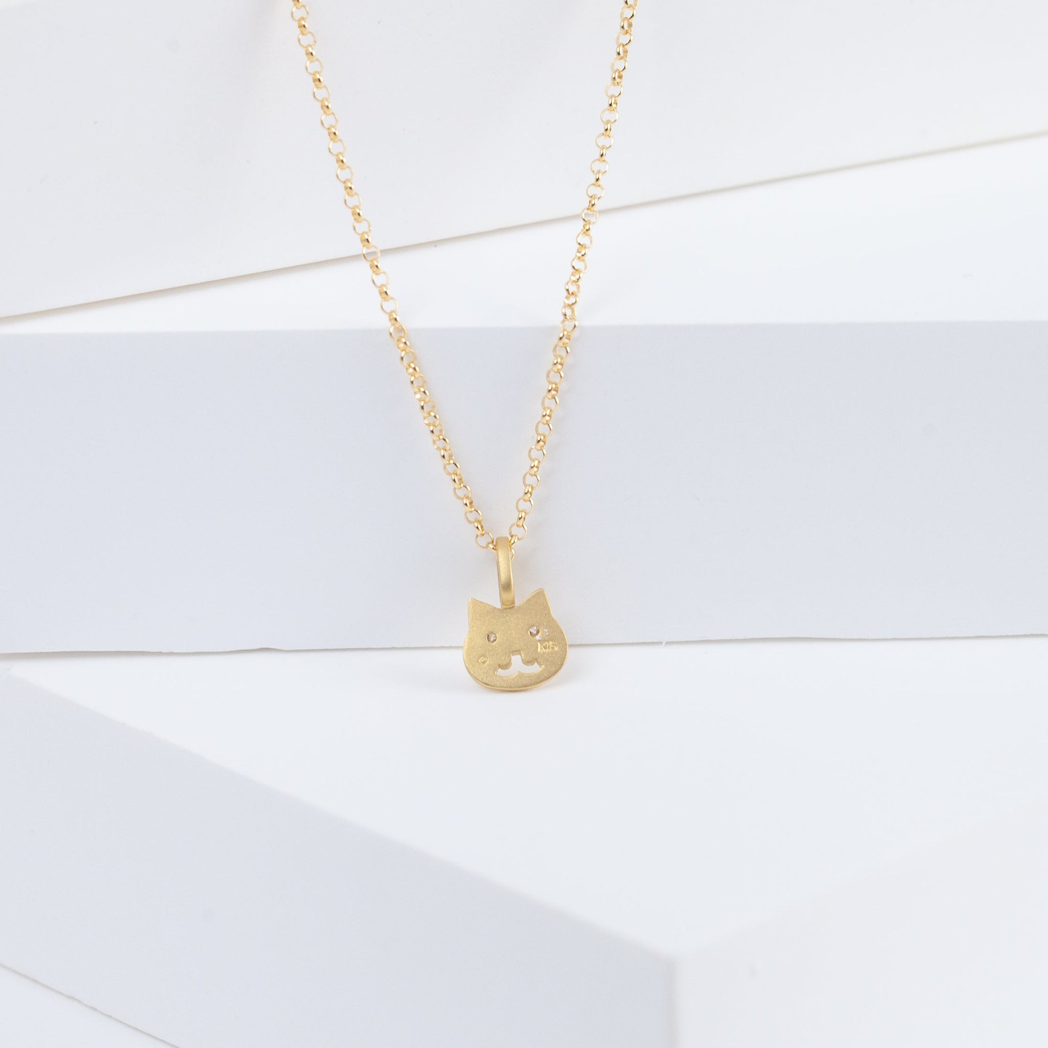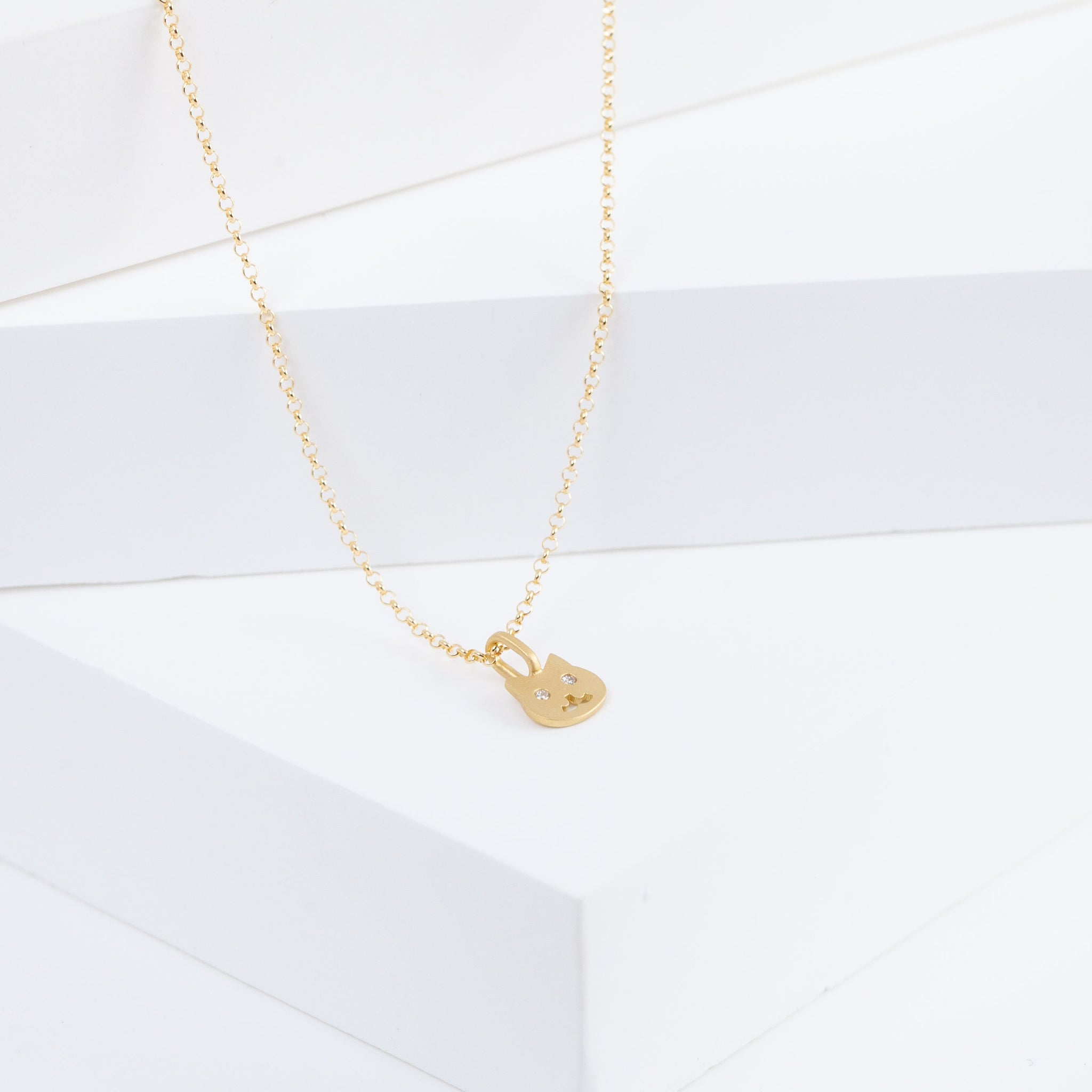 18K yellow gold necklace with white diamonds as the eyes. Simple and dainty everyday necklace with the most adorable face that will make your day.