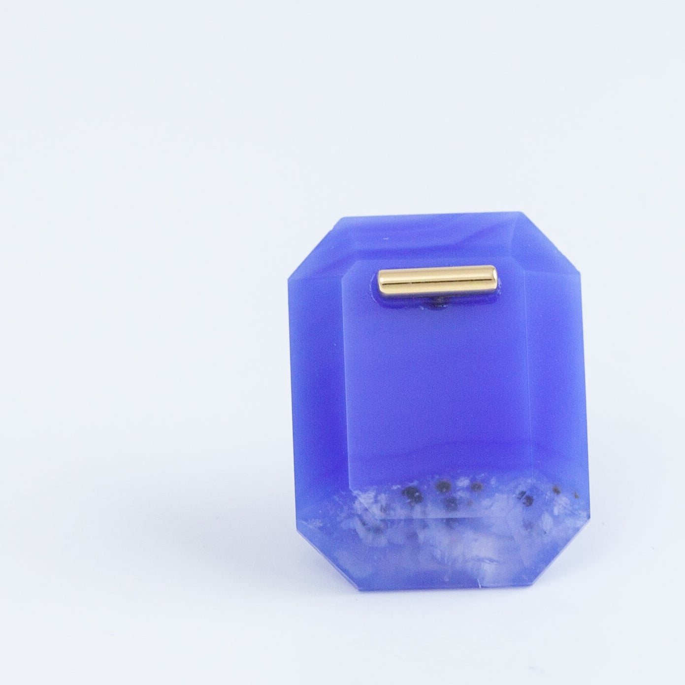 One-of-a-kind blue agate studs with specially facet-cut blue agate set with an 18k yellow gold post. The pattern on the blue agate is one of a kind, picturesque like night in a desert or under the sea.