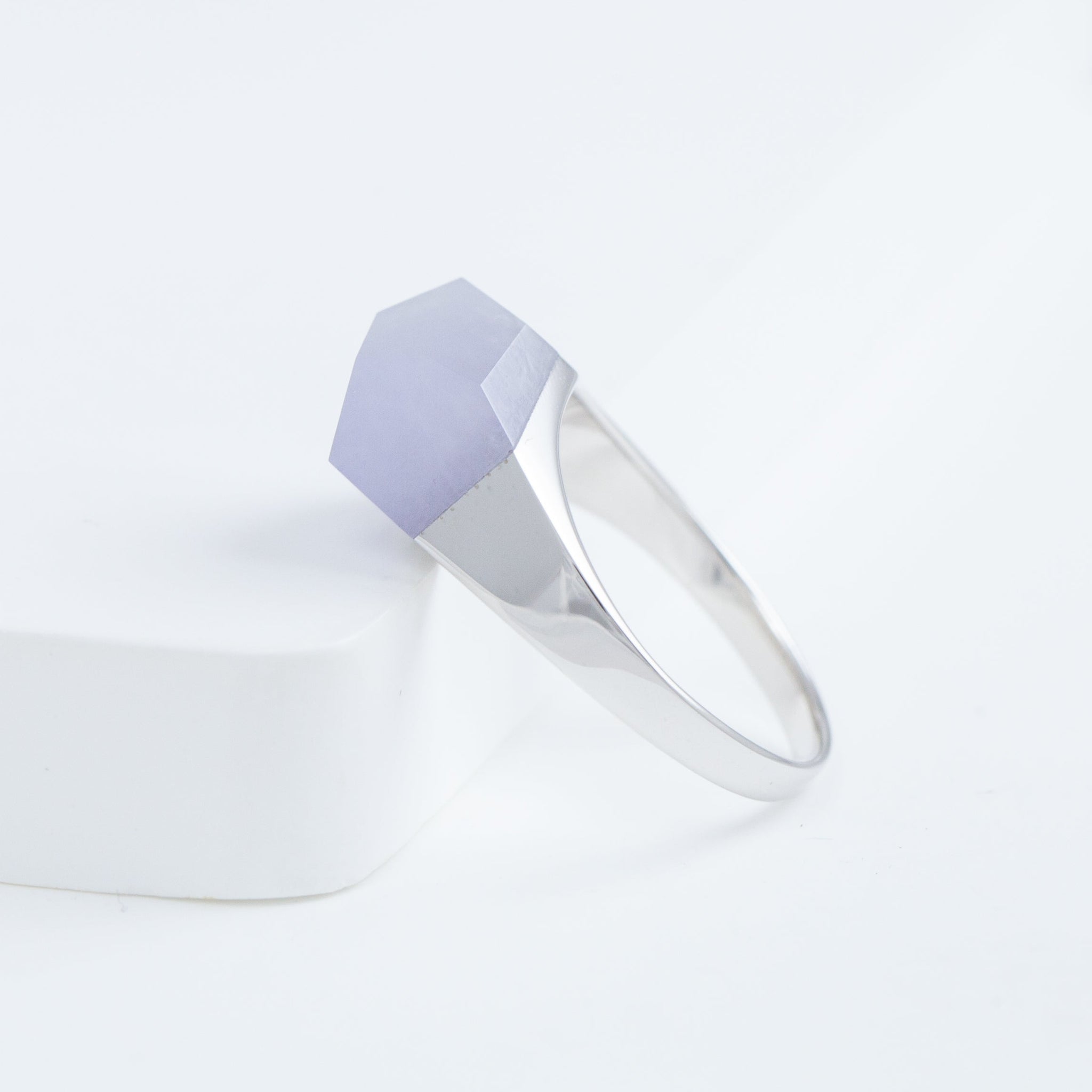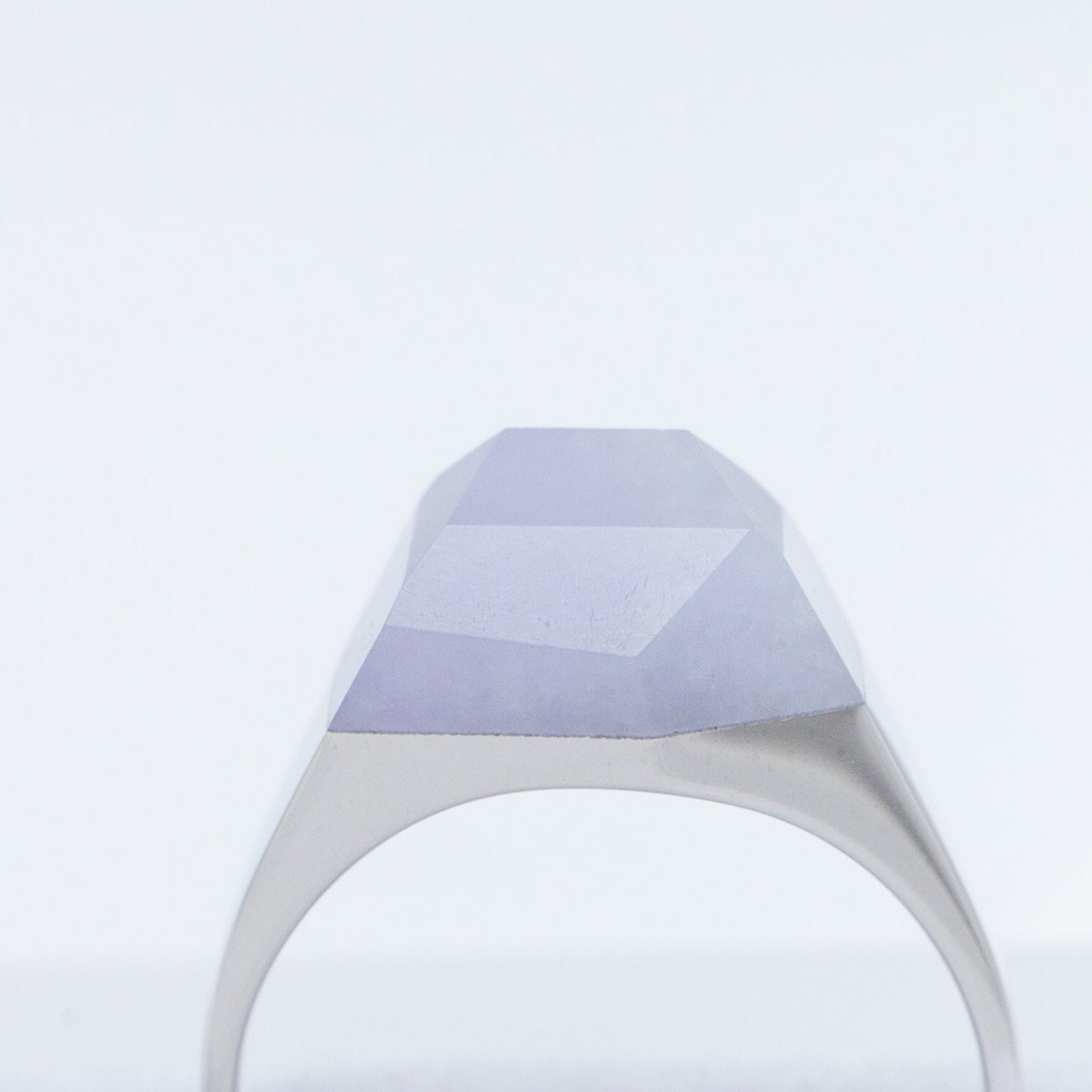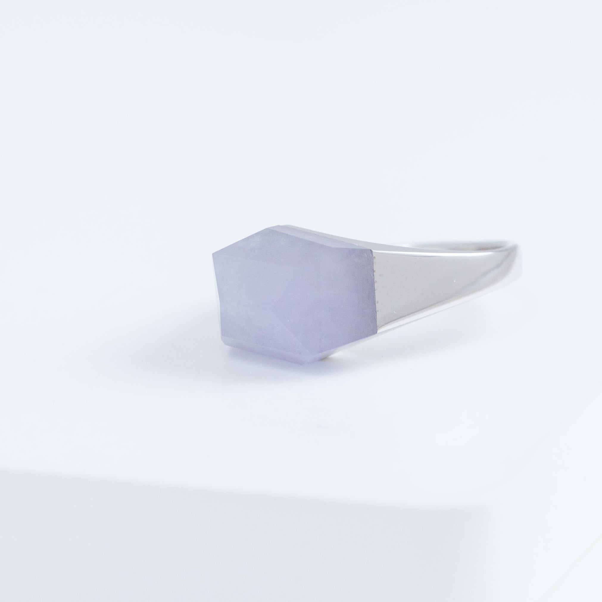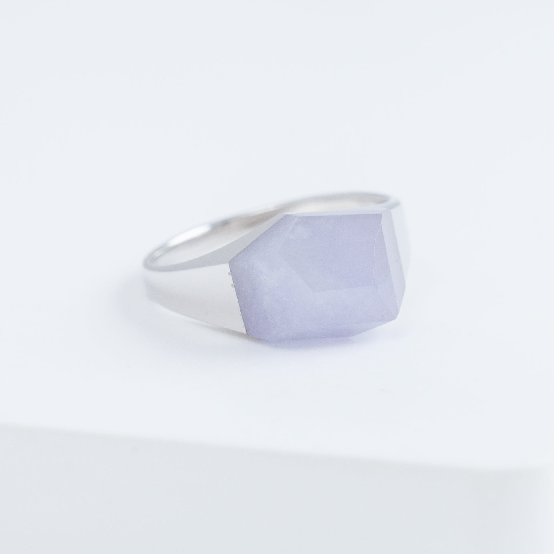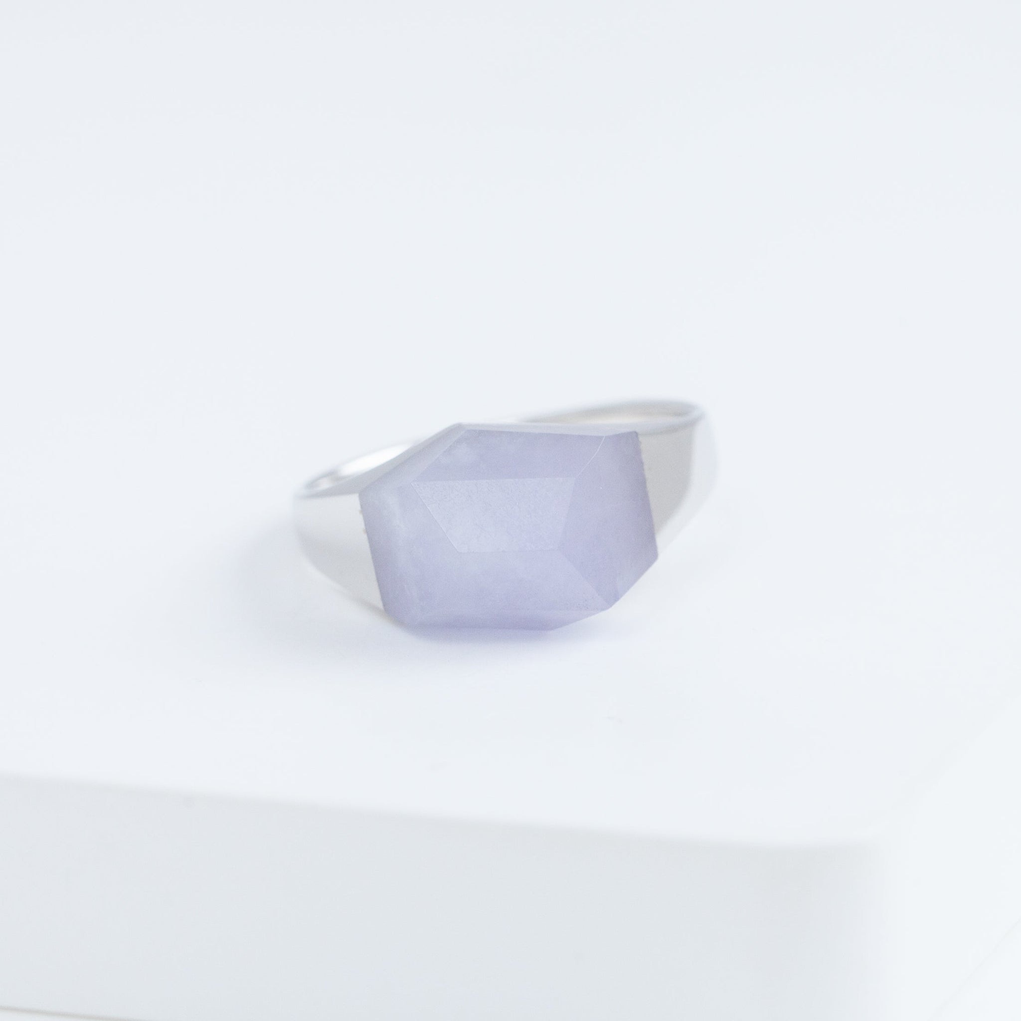 Bororo's signature rock ring in a smaller size with a beautiful purple jade stone. Mini rock rings are perfect for those who love the innovative design of rock rings and want to wear it every day. The irregular geometrical cut of the stone makes this ring edgy and contemporary.