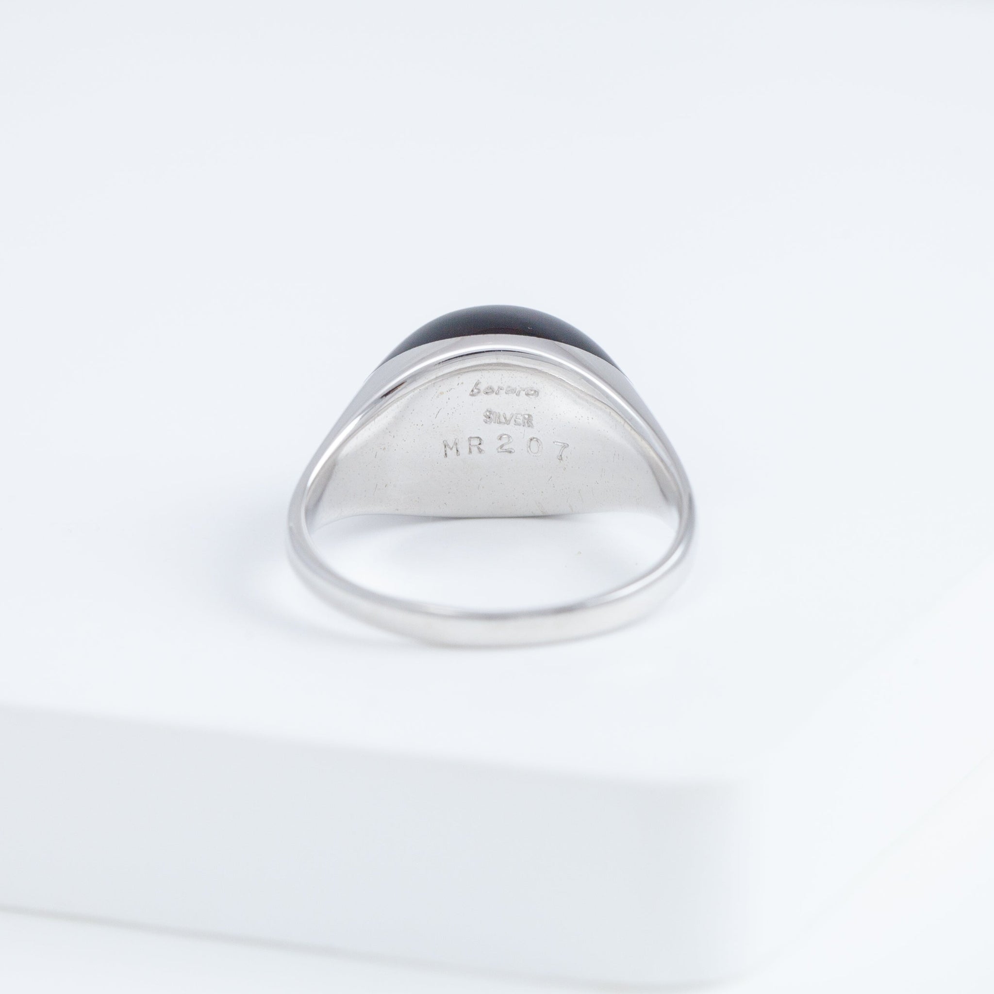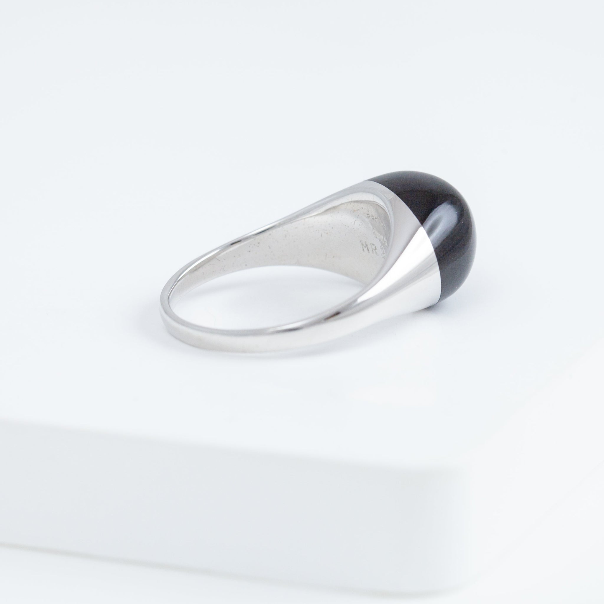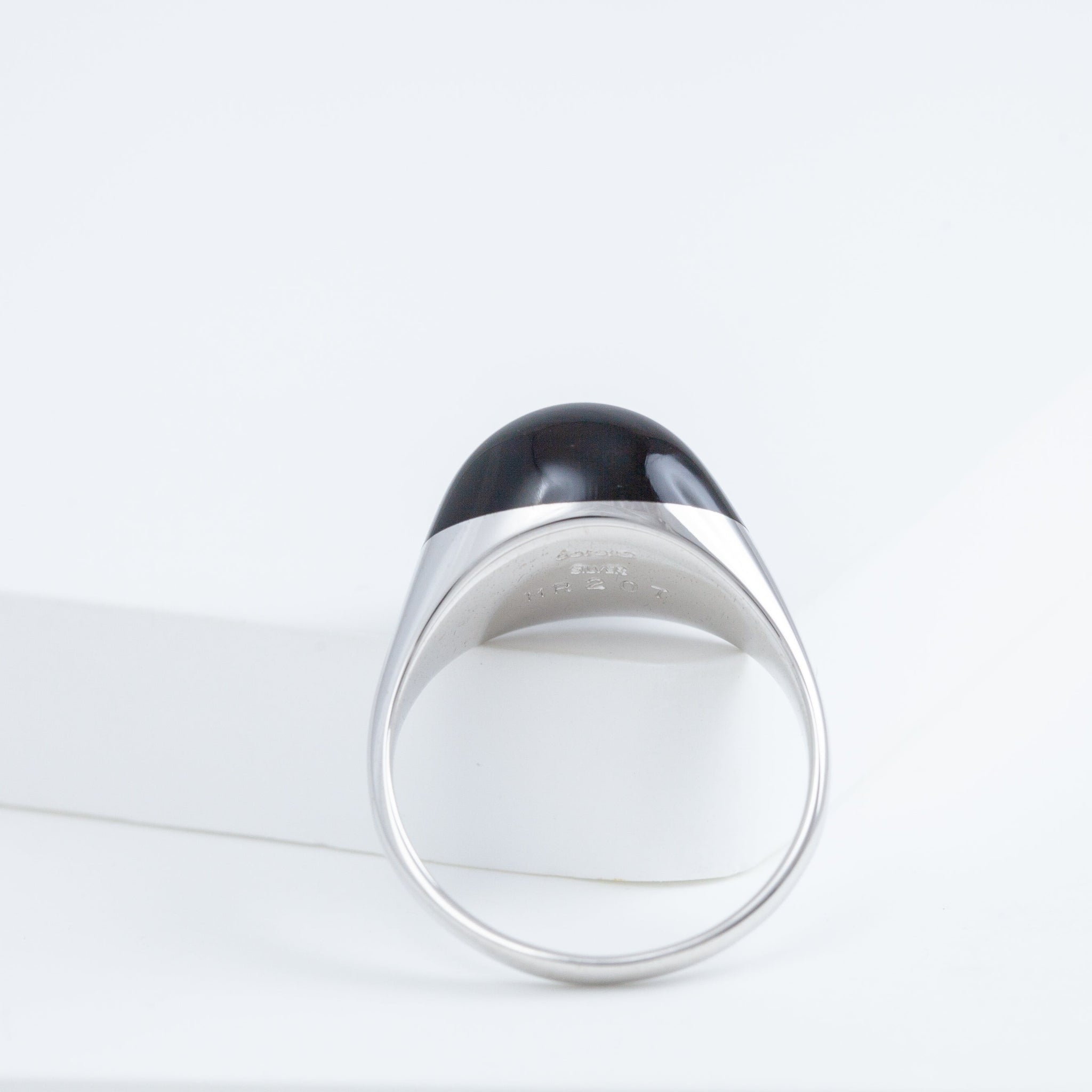 Bororo's signature rock ring in a smaller size with a round pitch-black onyx stone. This black onyx ring is as cool as you can imagine, and as elegant as can be. Mini rock rings are perfect for those who love the innovative design of rock rings and want to wear it every day. This ring is extremely gentle on clothing with its smooth, round-shaped stone.