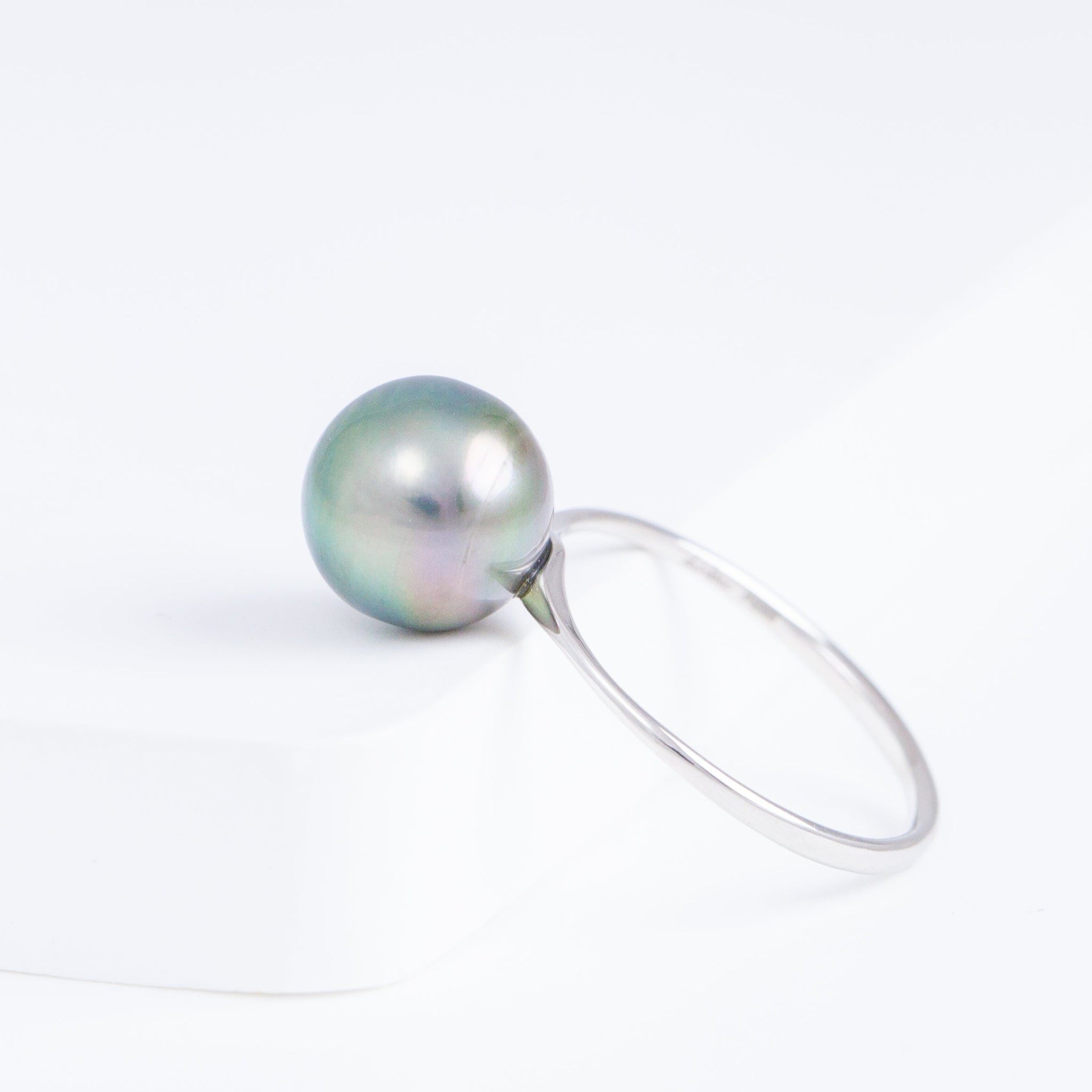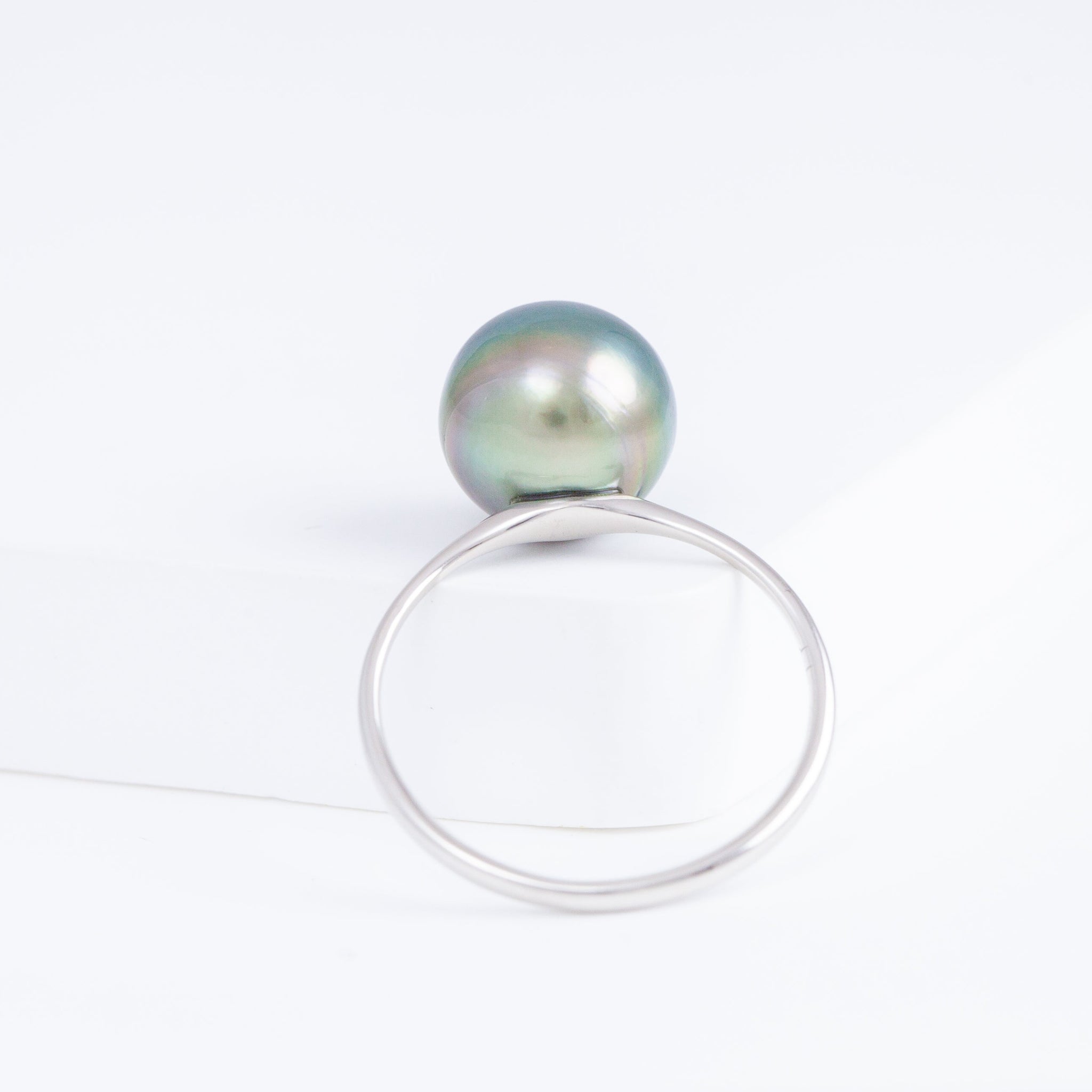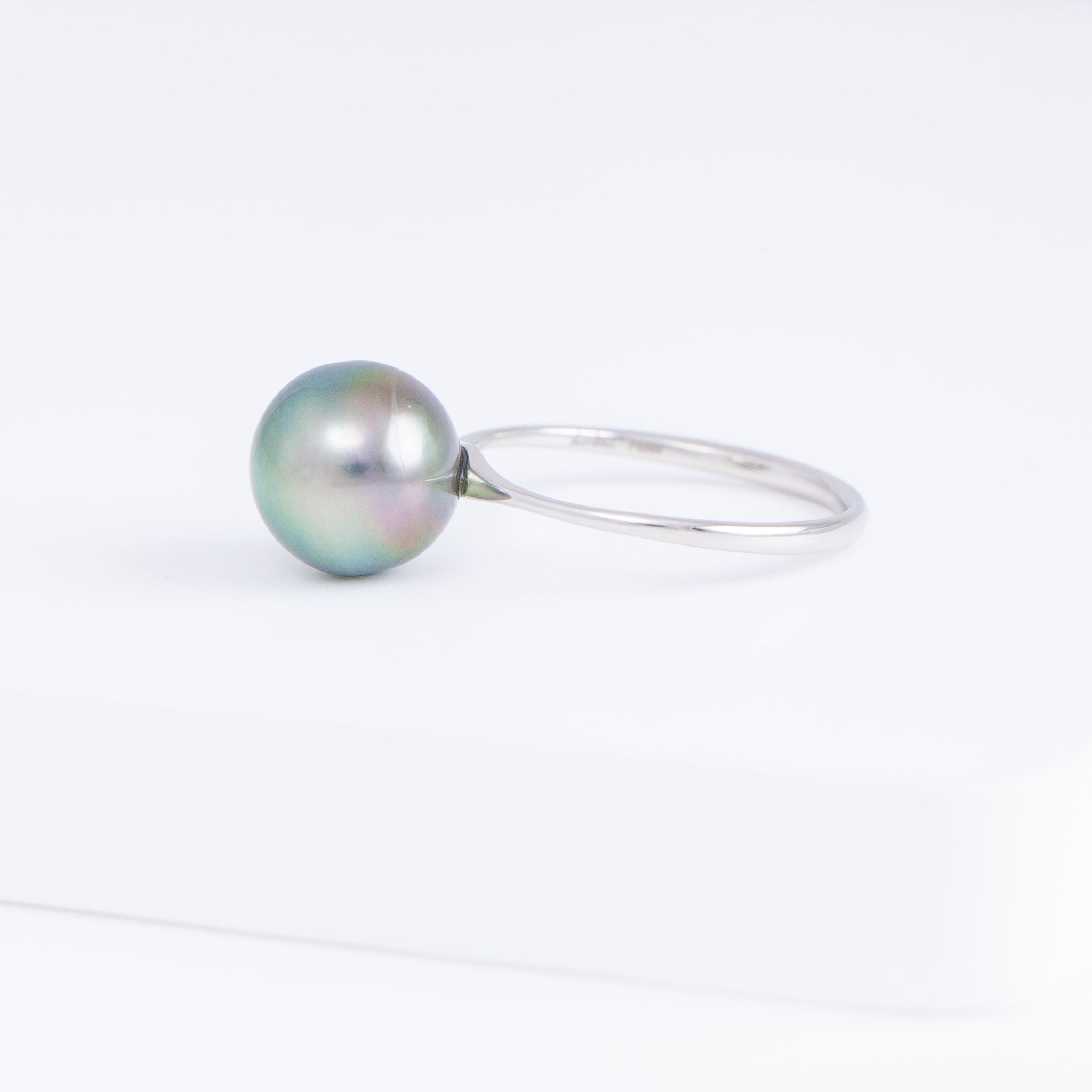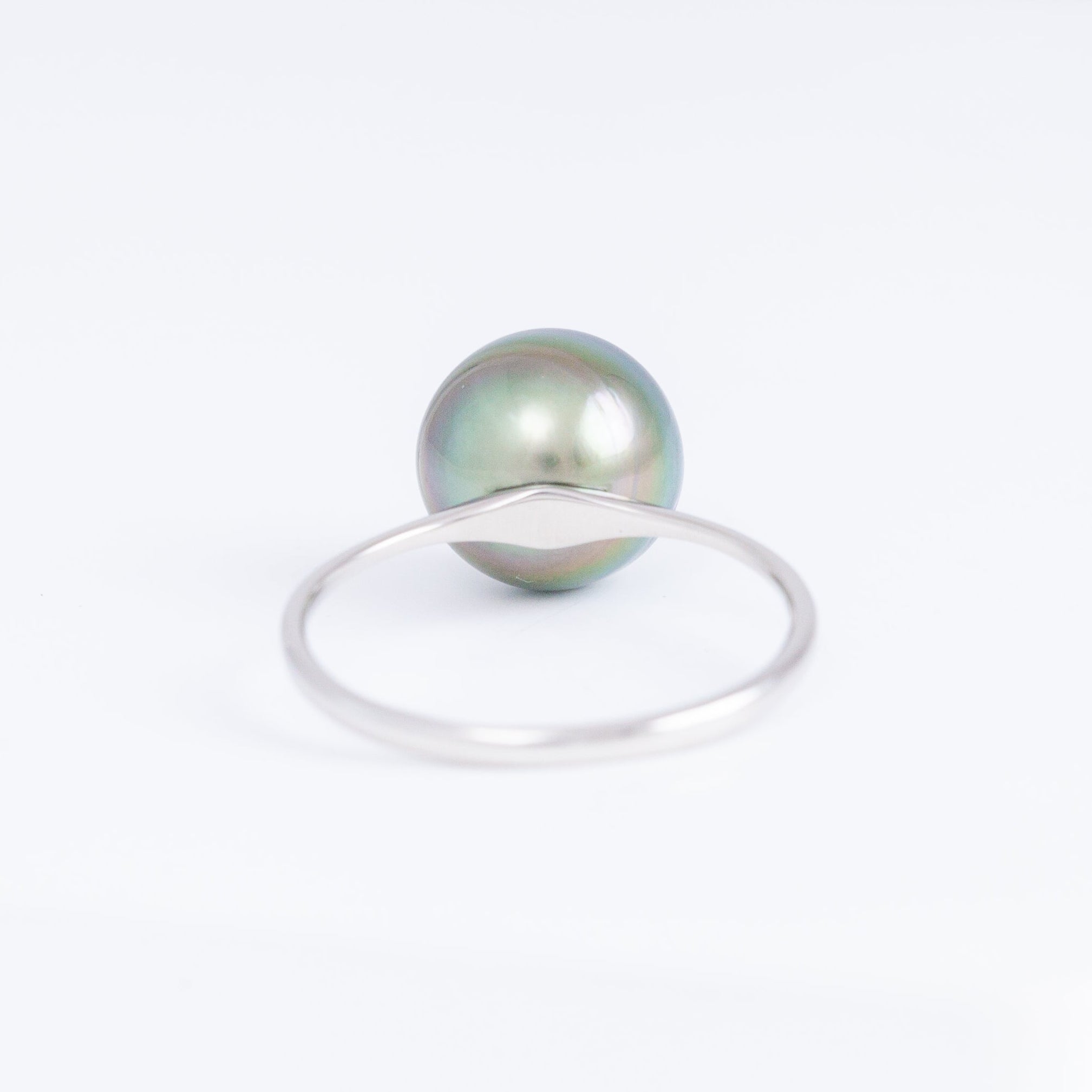 Delicate platinum ring with show stopping Peacock colored south sea pearl. Each pearl is unique in shape and color, making each ring one-of-a-kind. Feel free to contact us to see what pearl we have available!