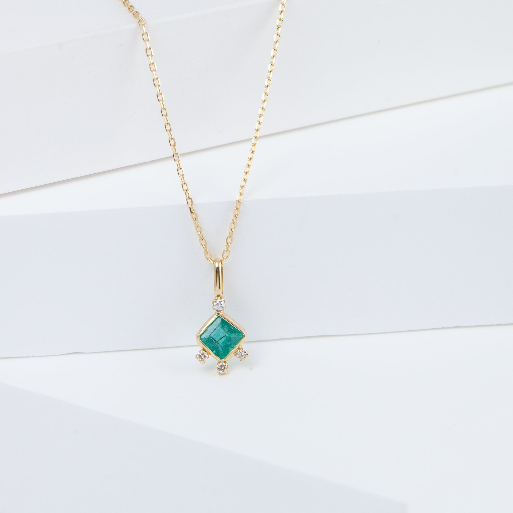 • Load image into Gallery viewer, Tiny square emerald and diamond necklace