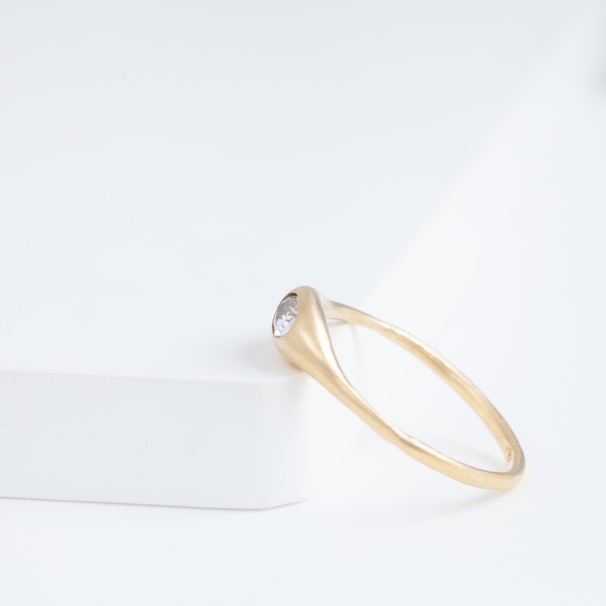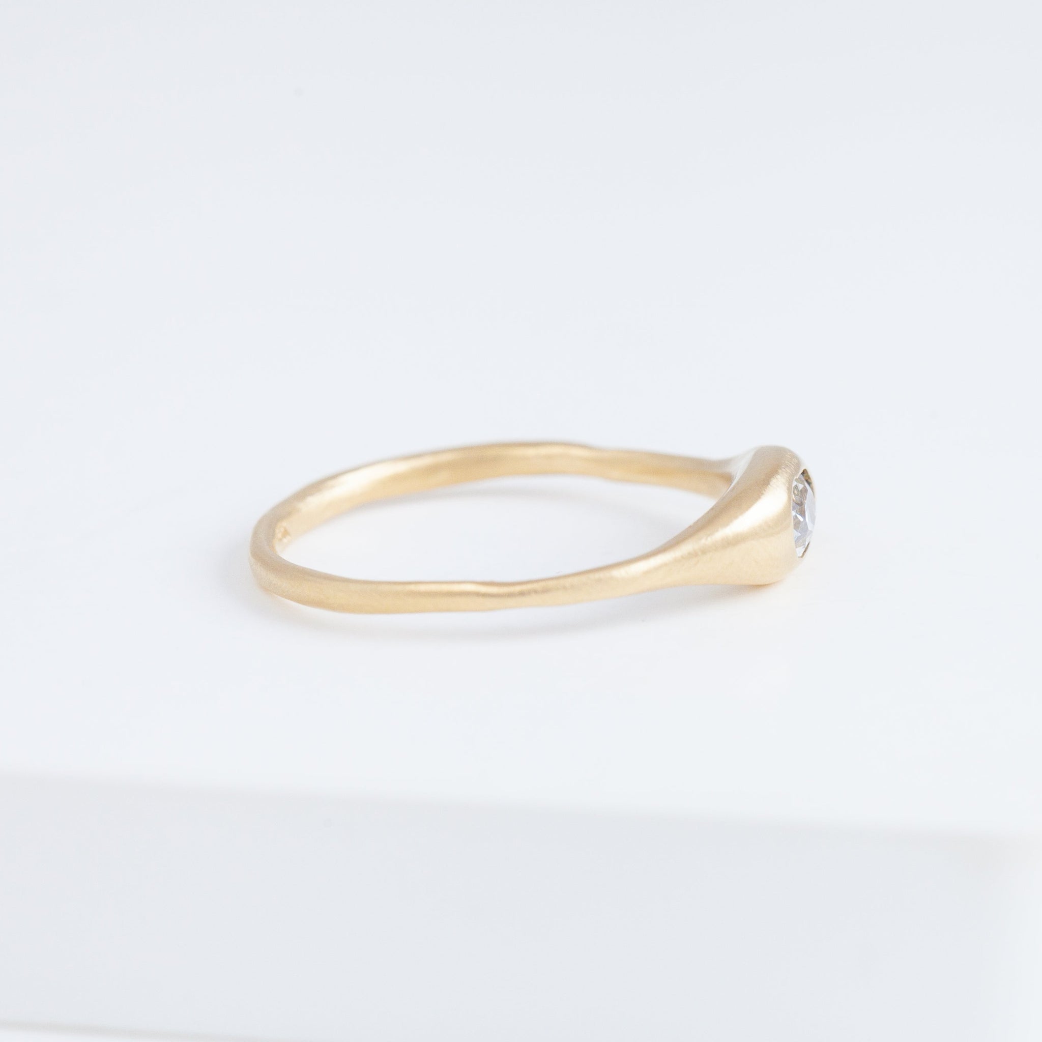 Hand-carved 14K yellow gold ring with a natural rustic diamond. Yui Ring embraces a graceful smoothness. She was made exactly for the Golden Hours - she’s confident, intelligent, poise and just entirely marvelous on her own. Not too loud, it shines just the right amount. Inspired by the nature, occasionally sweet pieces are often in organic shapes. The tourmaline used provides a one-of-a-kind color to each ring.